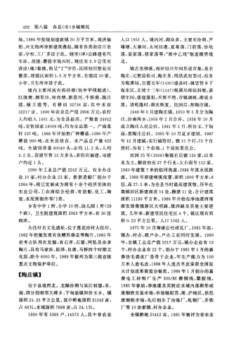 1990年 有 5369户 、14573人 ,其 中 非 农 业 全 镇 耕 地 21412亩 。1981年 被 评 为 省 农 业