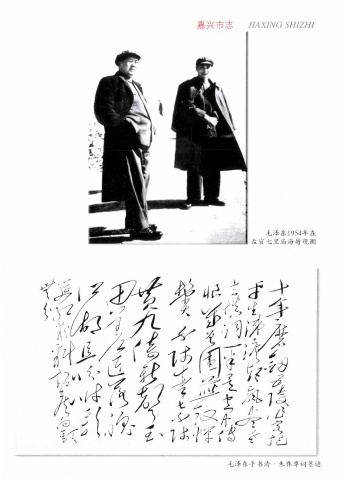 嘉 兴 市 志 JIAXING SH1ZHI 毛 泽 东 1954 在 年 盐 官 七 里 庙 海 塘 观 潮 毛 泽 东 手 书 清 · 朱 彝 尊 词 墨 迹