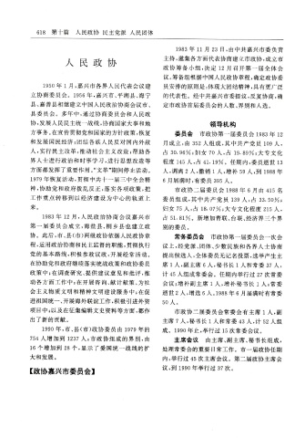 1983年 12月 ,人 民 政 治 协 商 会 议 嘉 兴 市 占 51.81%。 新 增 加 青 联 、台 联 、经 济 界 三 个 界