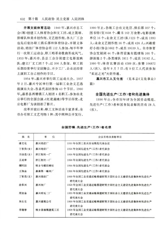 1954年 ,嘉 兴 市 举 行 职 工 运 动 大 会 。 1957 嘉 兴 市 工 人 文 化 宫 (见 本 志 《文 化 事 业 》