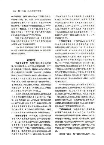 部 门 统 一 管 理 。对 干 部 的 正 常 调 配 管 理 ,人 事 部 干 部 考 核 制 度 对 政 府 各 部 门 、直 属 各 单