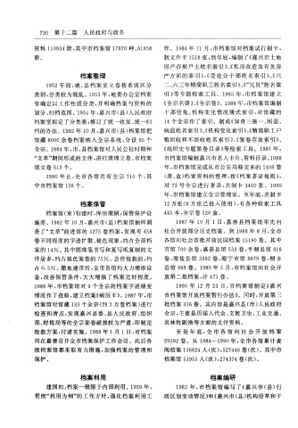 资 料 110934册 ,其 中 市 档 案 馆 17870种 、61858 作 。 1984年 11月 ,市 档 案 馆 对 档 案 试 行 制 卡 ,