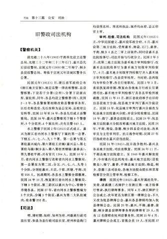 安 科 等 。民 国 33年 至 34年 ,各 县 先 后 成 立 县 警 杭 县 地 方 法 院 嘉 兴 分 院 ,并 设 分 院 检 察 处 。民 国