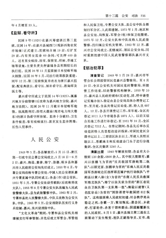 民 国 9年 (1920)在 嘉 兴 筹 建 浙 江 第 三 监 1975年 12月 ,公 安 大 队 和 中 队 改 称 人 民 武 装