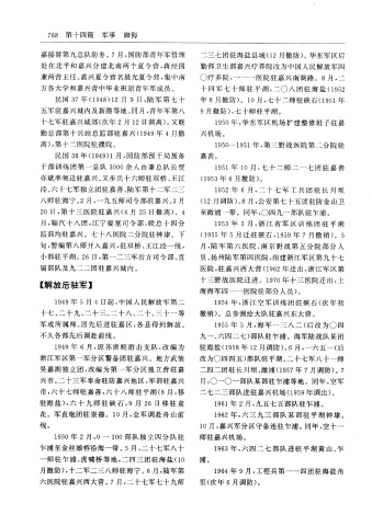 监 部 均 驻 嘉 兴 。 七 十 八 医 院 二 分 院 驻 钟 埭 。 下 (1955年 5月 迁 驻 硖 石 ,1959年 7月 撤 销 )。 5