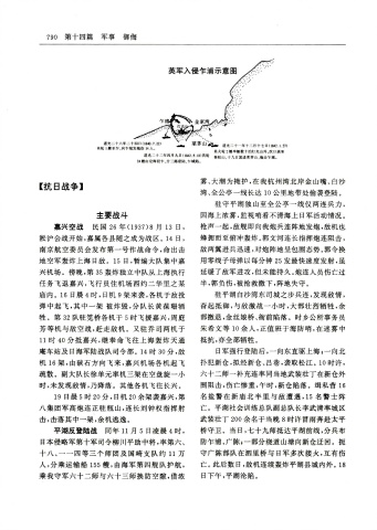 日 本 侵 略 军 第 十 军 司 令 柳 川 平 助 中 将 ,率 第 六 、 防 乍 浦 、广 陈 ;一 部 分 绕 道 山 塘 向 新 仓 迂 回 。 扼