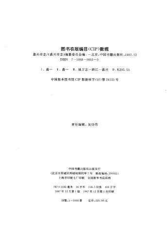 嘉 兴 市 志 /《嘉 兴 市 志 》编 纂 委 员 会 编 .— 北 京 :中 国 书 籍 出 版 社 ,1997.12