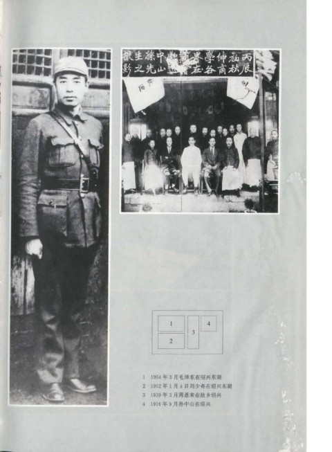 1 1954年3月毛泽东在绍兴东湖 2 1952年1月4日刘少奇在绍兴东湖 3 1939年3月周恩来在故乡绍兴 4 1916年9月孙中山在绍兴