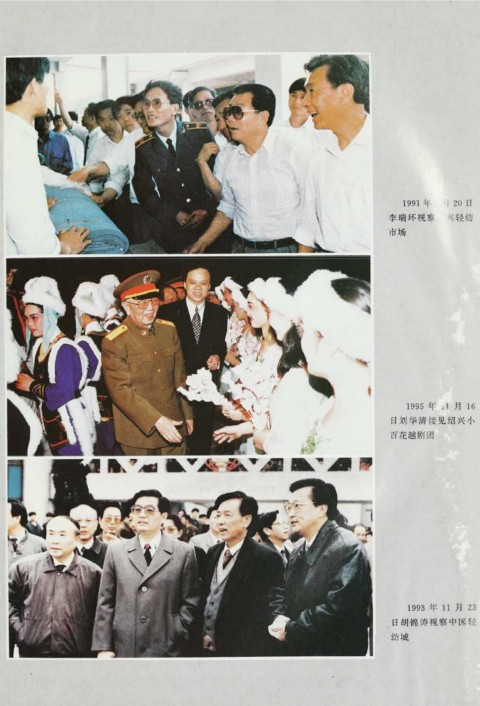 1991年5月20日 李瑞环视察绍兴轻纺 市 场 1 9 9 5 年 1 1 月 1 6 日刘华清接见绍兴小 百花越剧团 1 9 9 3 年 1 1 月 2 3 日胡 锦涛 视察 中国 轻 纺 城