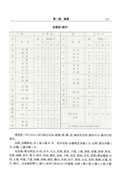 山阴、会稽两县,共1城4镇67乡。其中山阴、会稽两县共辖3乡,山阴、萧山共辖1