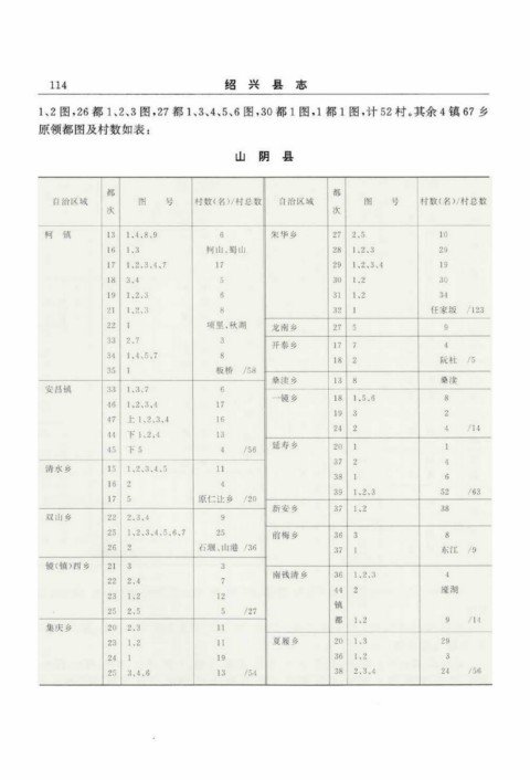 1、图,26都1、、图,27都1、、、、图,30都1图,1都1图,计52村。其余4镇67乡 4 3 6 5 2 2 3 原领都图及村数如表: 山 阴 县