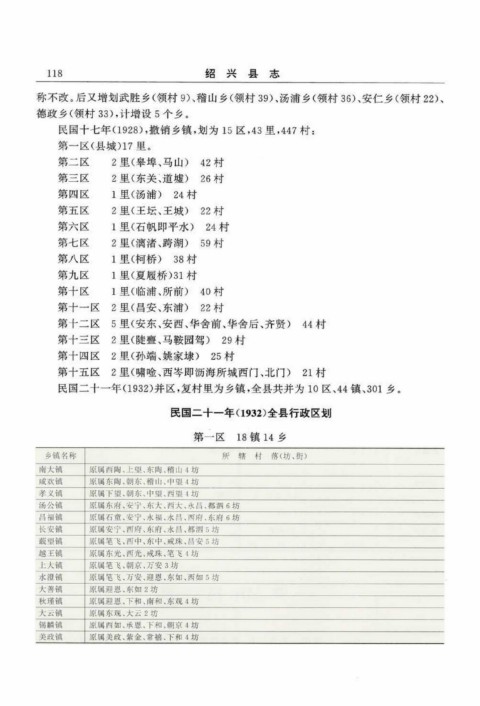 民国二十一年(1932)并区,复村里为乡镇,全县共并为10区、44镇、301乡。