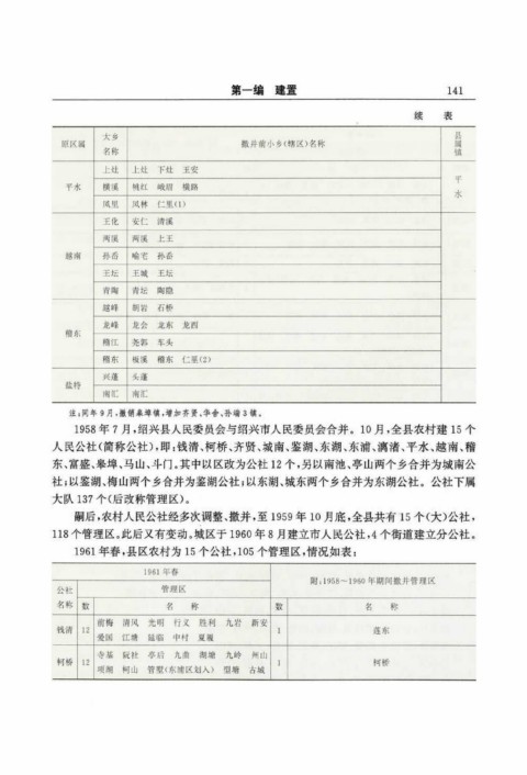 人民公社(简称公社),即:钱清、柯桥、齐贤、城南、鉴湖、东湖、东浦、漓渚、平水、越南、稽