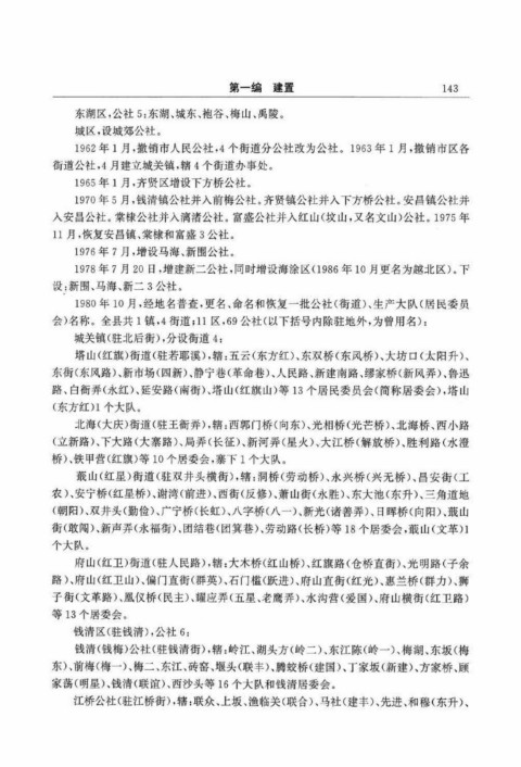 街(敢闯)、新声弄(永福街)、团结巷(团箕巷)、劳动路(长桥)等18个居委会,蕺山(文革)1