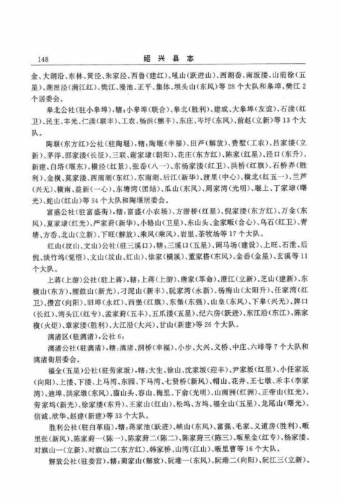 横(火炬)、章家溇(胜利)、大江沿(大兴)、甘山(新建)等26个大队。