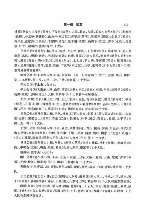 横溪公社(驻岔路口),辖:岔路口(新建)、蒋坞(建坞)、横路、沈村(红旗)、黄壤坞(红