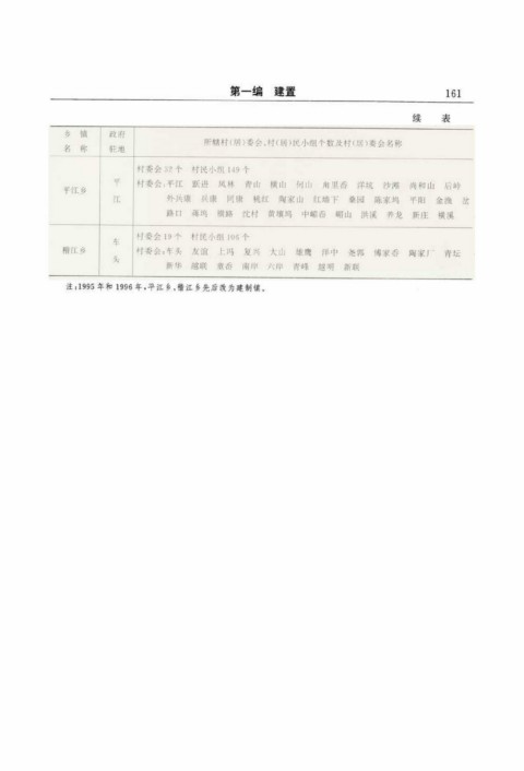 续 表 注:1995年和1996年,平江乡、稽江乡先后改为建制镇。