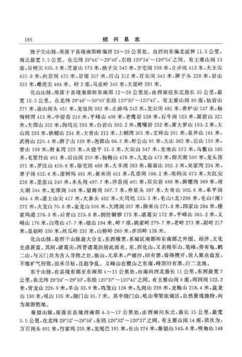 秦 望 山 脉 , 座 落 在 县 境 西 南 部 4.5~7公 里 处 , 由 西 南 向 东 北 , 最 长 15公 里 , 最 宽