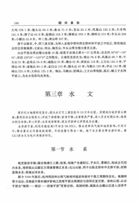 兴水系。南部低山丘陵区大部属曹娥江水系;化山山脉、西干山脉北部和中北部平原,原称