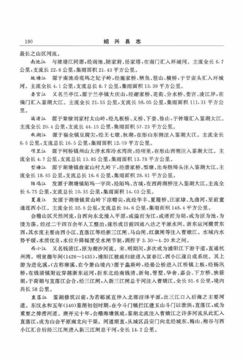 重要之排涝河道。唐开元十年,会稽海塘筑成,鉴湖北流注入曹娥江之许多河流从此汇入