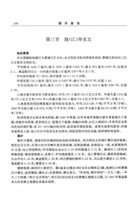 欠二十四潮,“积于五岁再闰”。明万历《绍兴府志》对曹娥江潮候之记载,与1985年桑盆殿
