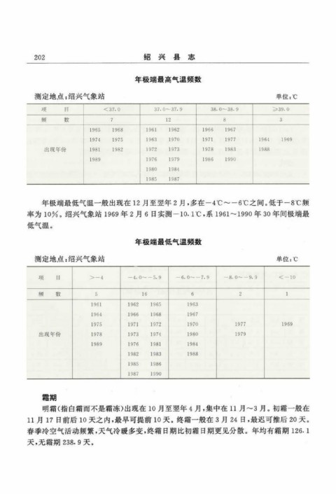 率为10% 。绍兴气象站1969年2月6日实测- 10. 1℃,系1961~ 1990年30年间极端最