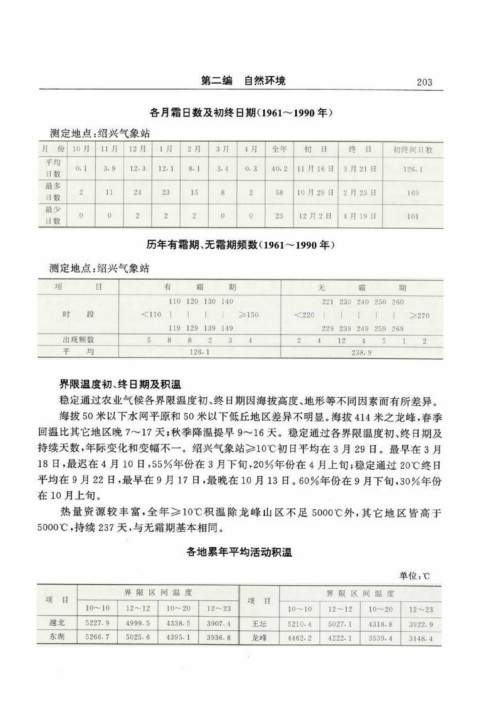 持续天数,年际变化和变幅不一。绍兴气象站≥10℃初日平均在3月29日。最早在3月