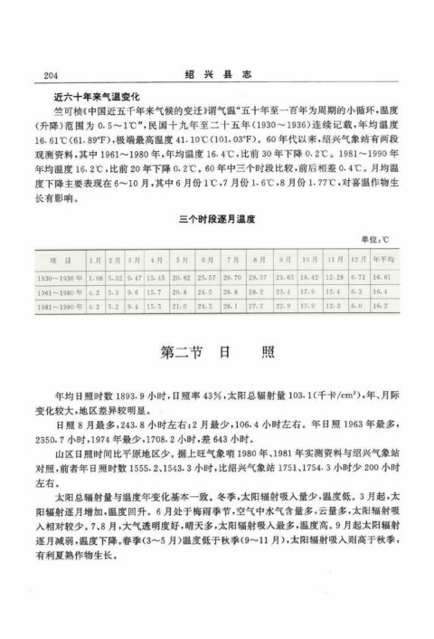观测资料,其中1961~1980年,年均温度16.4℃,比前30年下降0.2℃。 1981~ 1990年