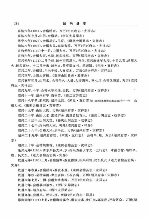 绍兴九年、十年,会稽水旱相继,民饥。万历《绍兴府志·灾祥志》
