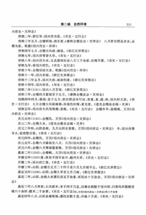 绍熙三年,会稽四月霖雨至于五月。《康熙会稽县志·灾祥志》
