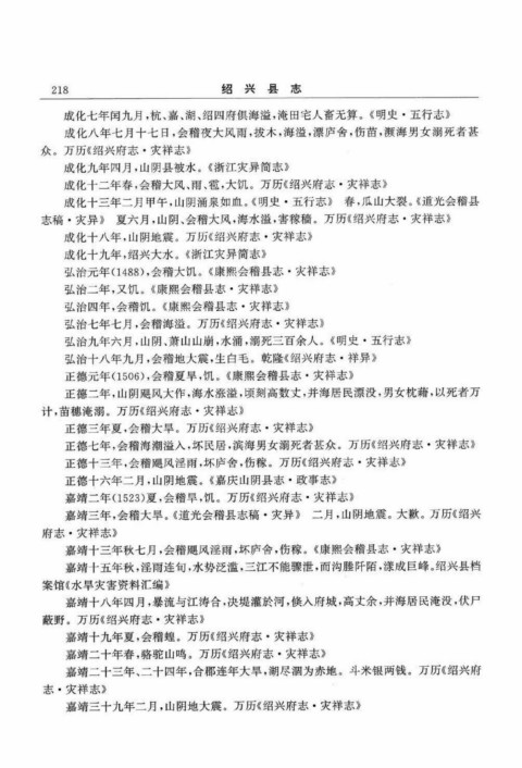 成化十八年,山阴地震。万历《绍兴府志·灾祥志》