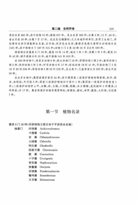 藻类8门38种(浮游植物主要分布于平原淡水水域)