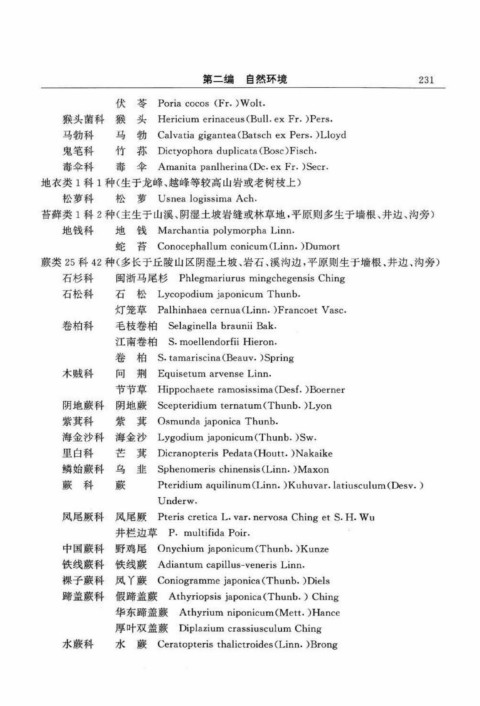 蕨类25科42种(多长于丘陵山区阴湿土坡、岩石、溪沟边,平原则生于墙根、井边、沟旁)