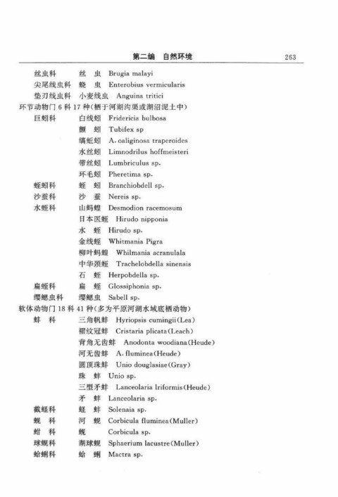 环节动物门6科17种(栖于河湖沟渠或湖沼泥土中)