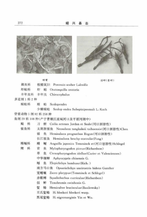 鱼纲29科108种(产于曹娥江流域河口及平原河湖中)