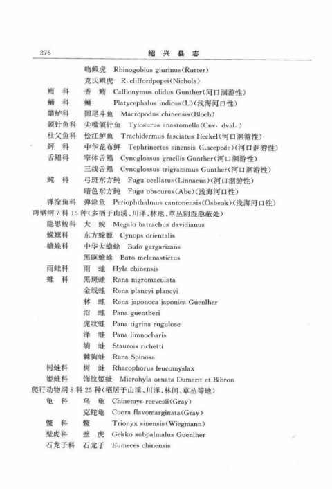 两栖纲7科15种(多栖于山溪、川泽、林地、草丛阴湿隐蔽处)