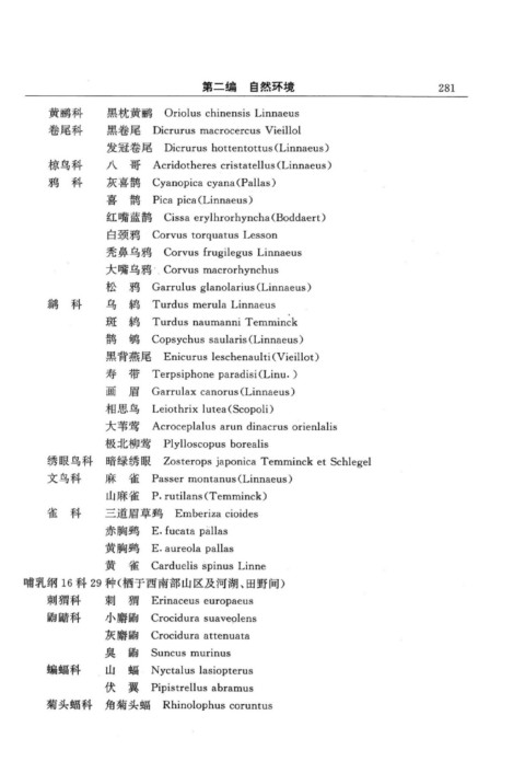 哺乳纲16科29种(栖于西南部山区及河湖、田野间)