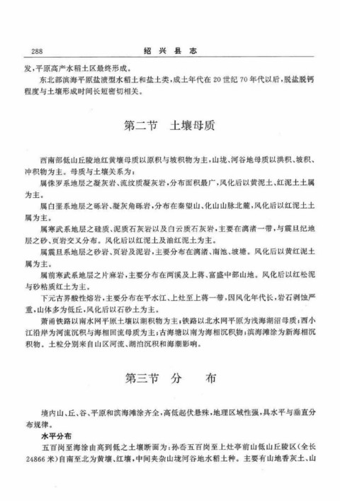 萧甬铁路以南水网平原土壤以湖积物为主;铁路以北水网平原为浅海湖沼母质;西小
