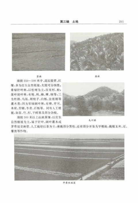 茅草混交地带。人工栽培以茶为主,兼栽部分黑松。还有部分开垦为旱粮地,栽植玉米、豆、