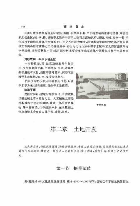 到当代围涂造田,域内是一部劳动人民疏导洪流,排干沼泽,垦殖土地,发展生产之文明