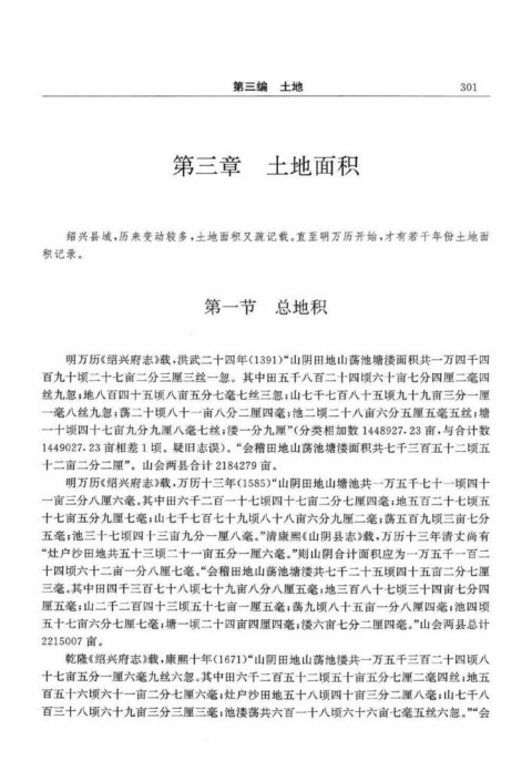 绍兴县域,历来变动较多,土地面积又疏记载。直至明万历开始,才有若干年份土地面