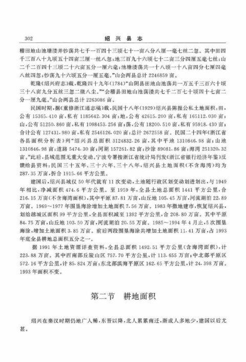 民国时期,据《重修浙江通志稿》载,民国十八年(1929)绍兴县陈报公私土地面积:田,