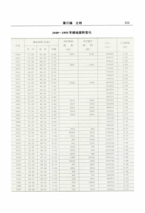 1949~ 1993年耕地面积变化