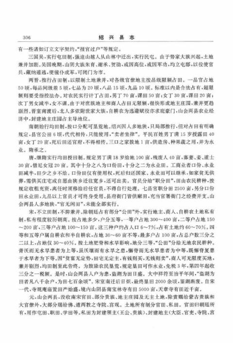 南朝始行均田制,按口分配可垦荒地。绍兴因人多地狭,只局部推行,但对占田有明确