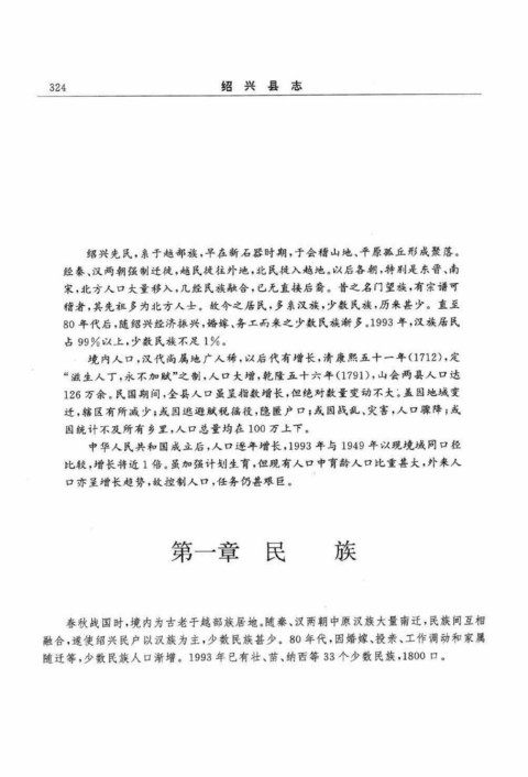 融合,遂使绍兴民户以汉族为主,少数民族甚少。8 0 年代,因婚嫁、投亲、工作调动和家属