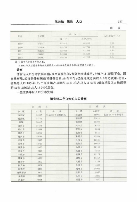 清前无人口分布资料可稽,及至宣统年间,方分别统计城坊、乡镇户口,断续不全。因