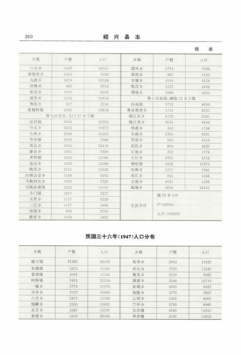 续 表 民国三十六年(1947) 人口分布