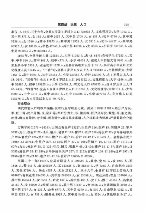 率仅18.93%。三十六年,全县6岁及6岁以上人口724933人,文化程度为:大学1013人,