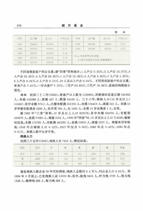 据县残疾人联合会90年代初调查,残疾人总数约3.4万人,约占总人口3.61%。到