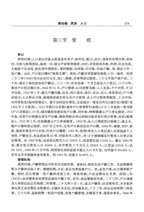 证管理。至1988年底,全县登记暂住人口18679人,发放暂住证11193人。截止1993年